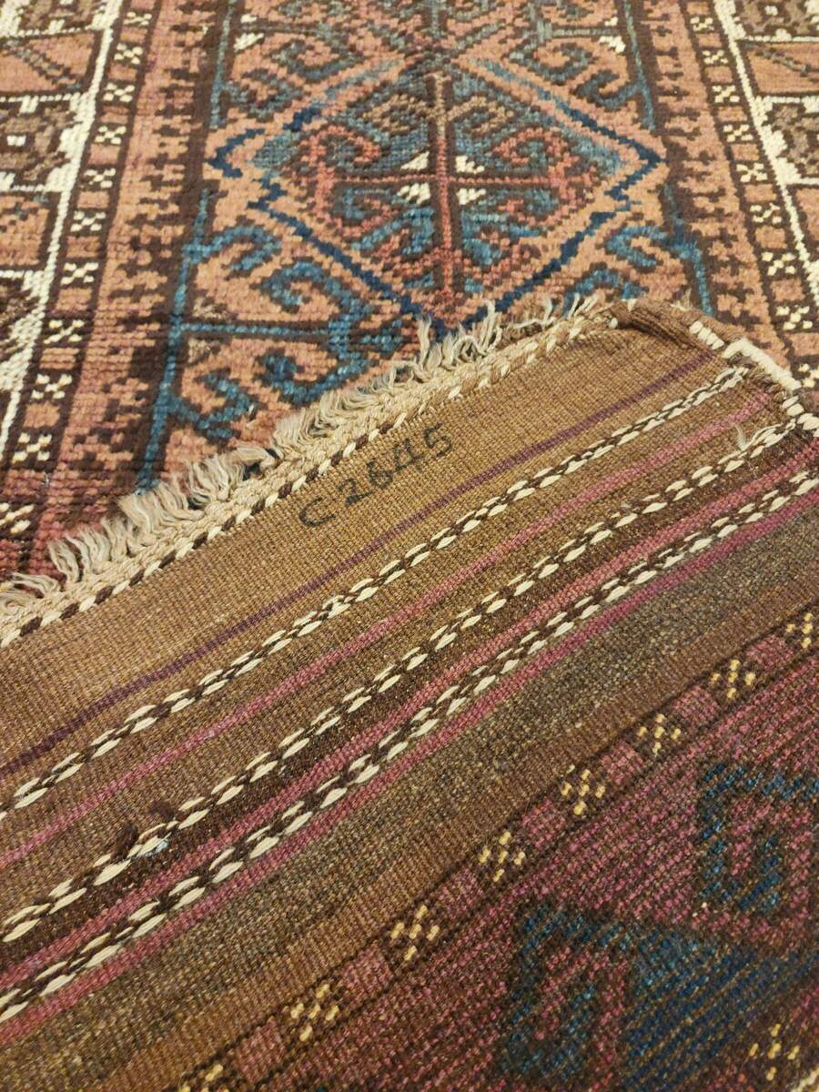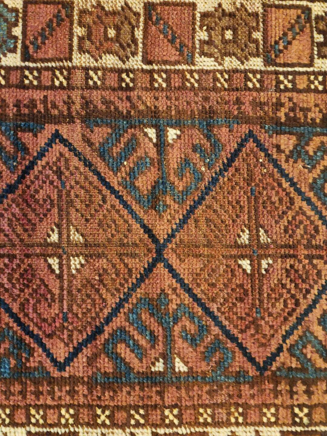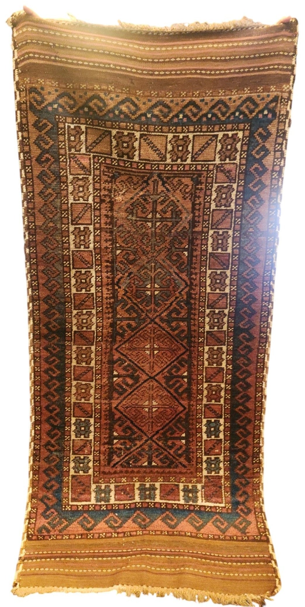 Antique Handwoven Baluch Rug – 3x6 ft | Tribal Geometric Design (Sn:2645)
