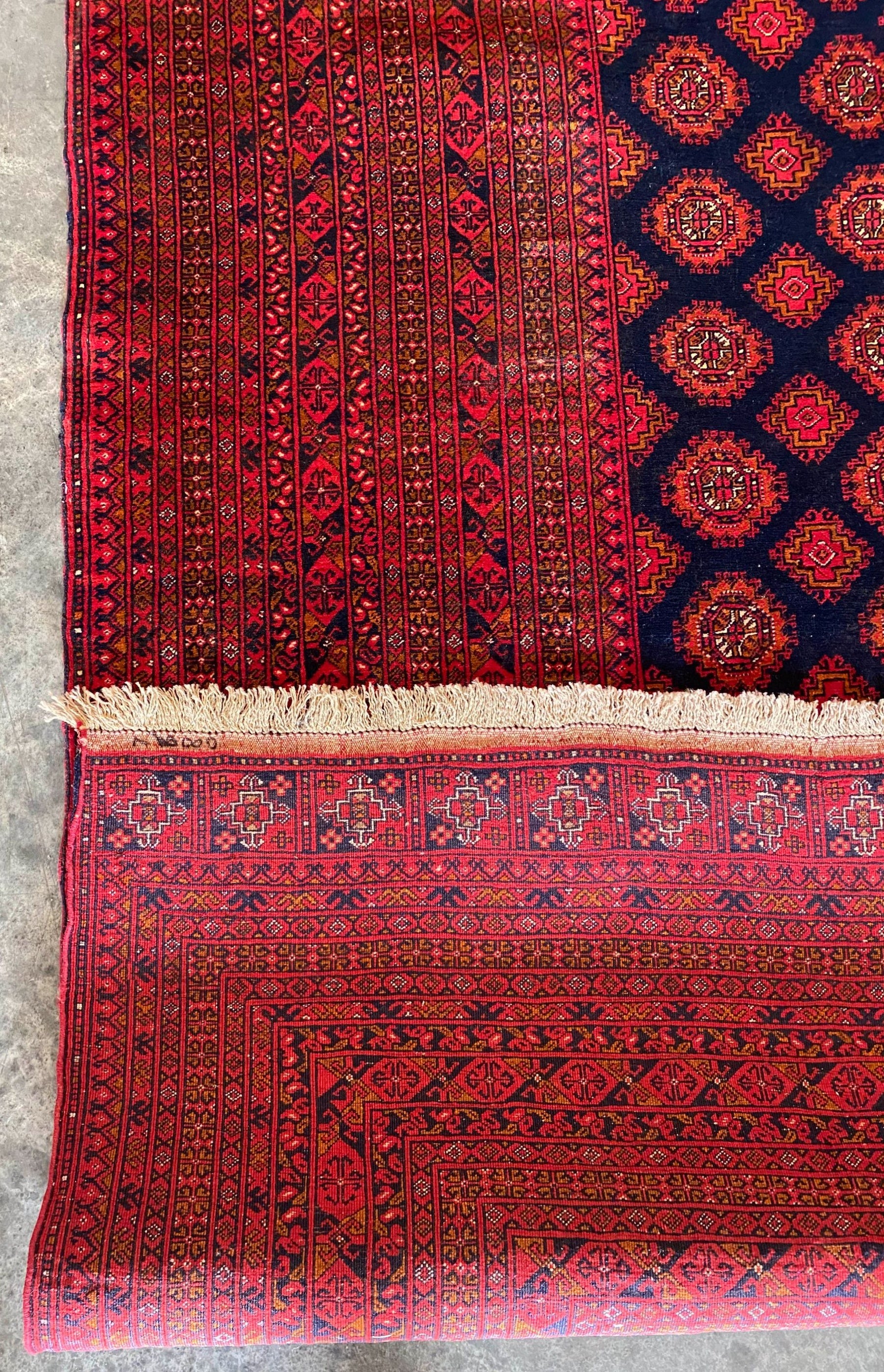 Beshir rugs are highly regarded for their softer weave, brilliant natural dyes, and their more curvilinear and decorative designs compared to other Turkmen styles. The harmonious use of deep reds, ivory, and burnt orange tones in this piece reflects its rich cultural heritage.