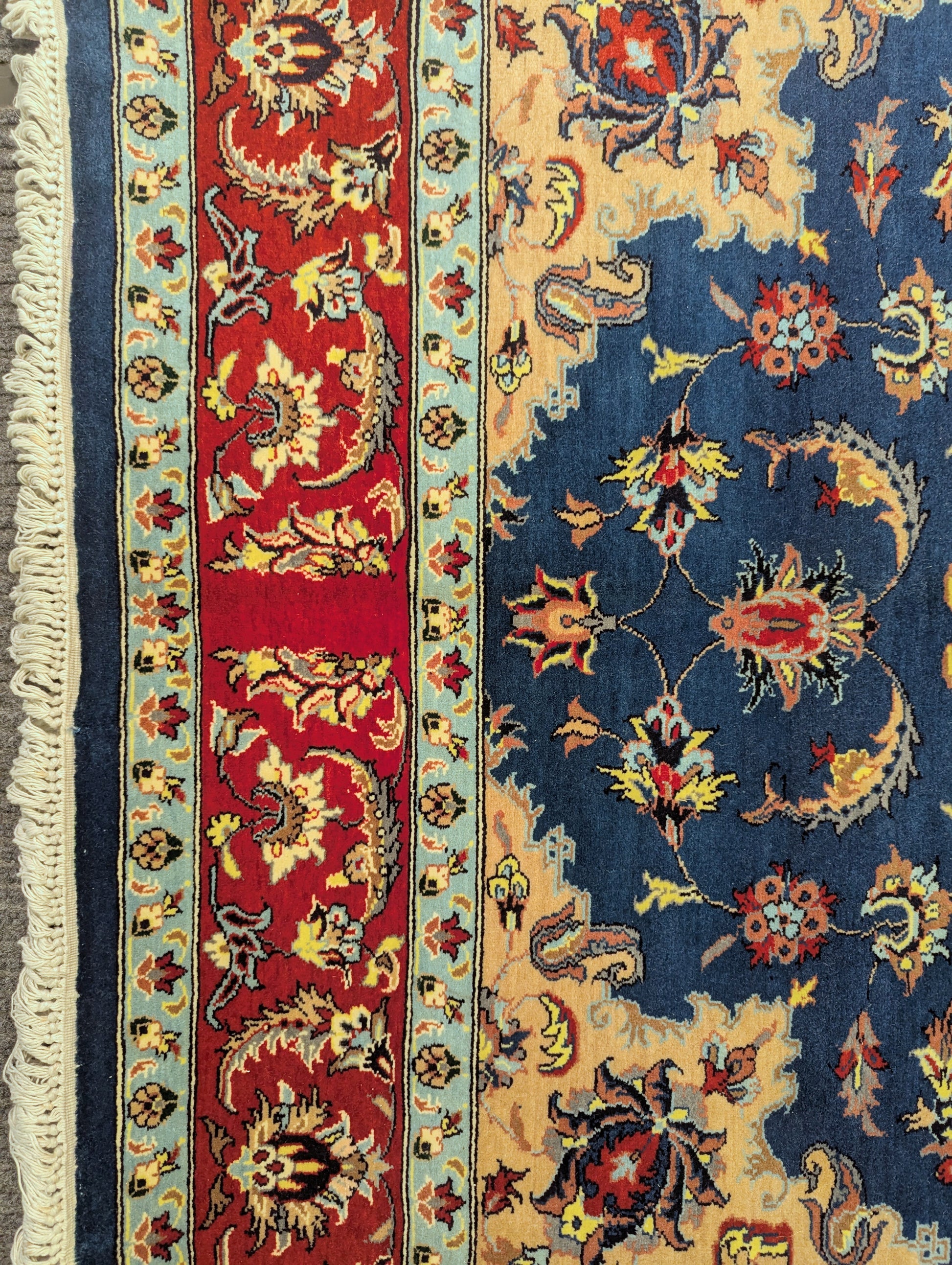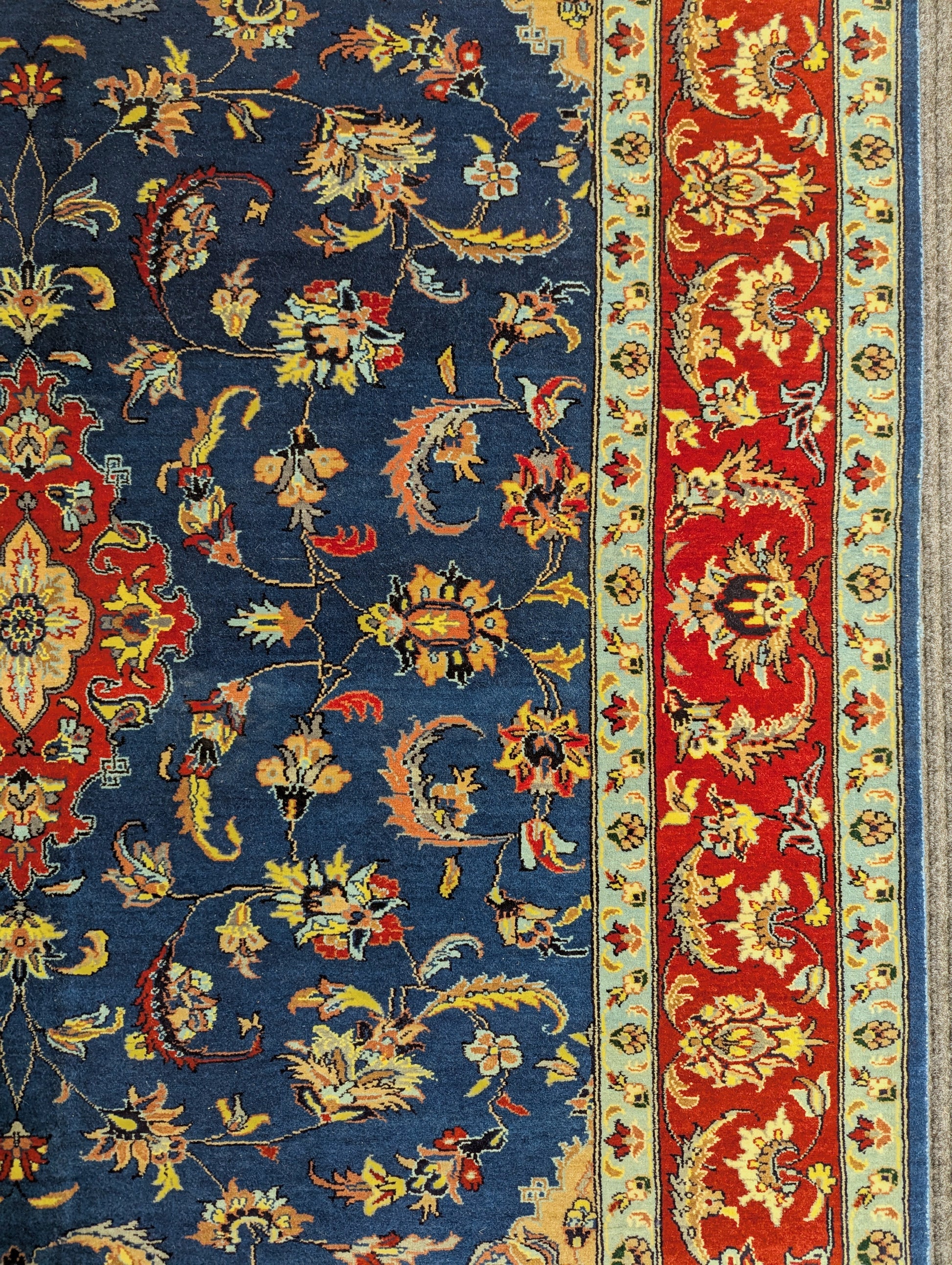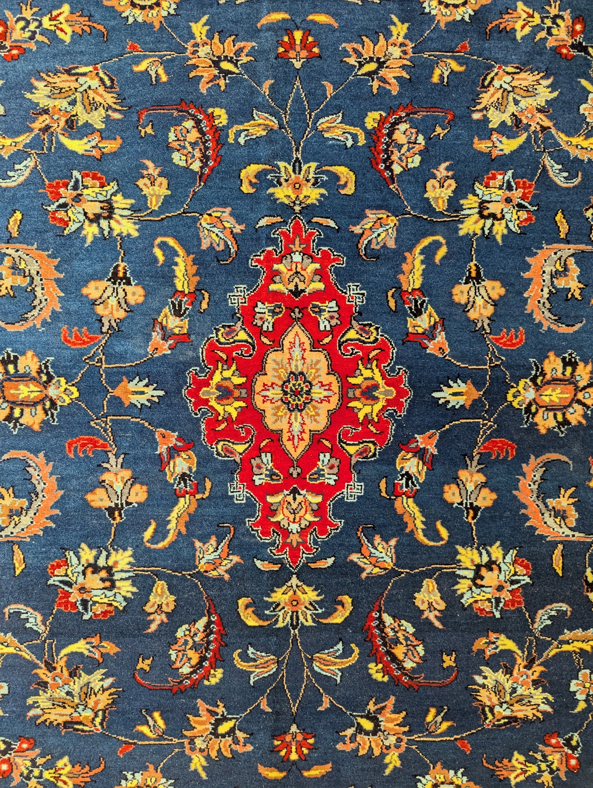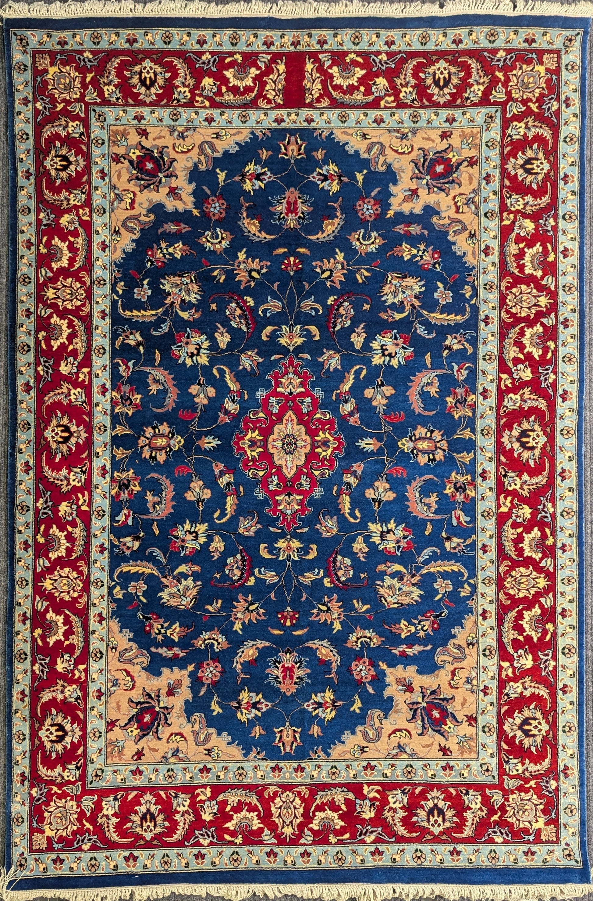 Blue & Red Kashan-Style Handmade Wool Rug – 4.5x7 ft | Floral Medallion Design (Sn:1941)