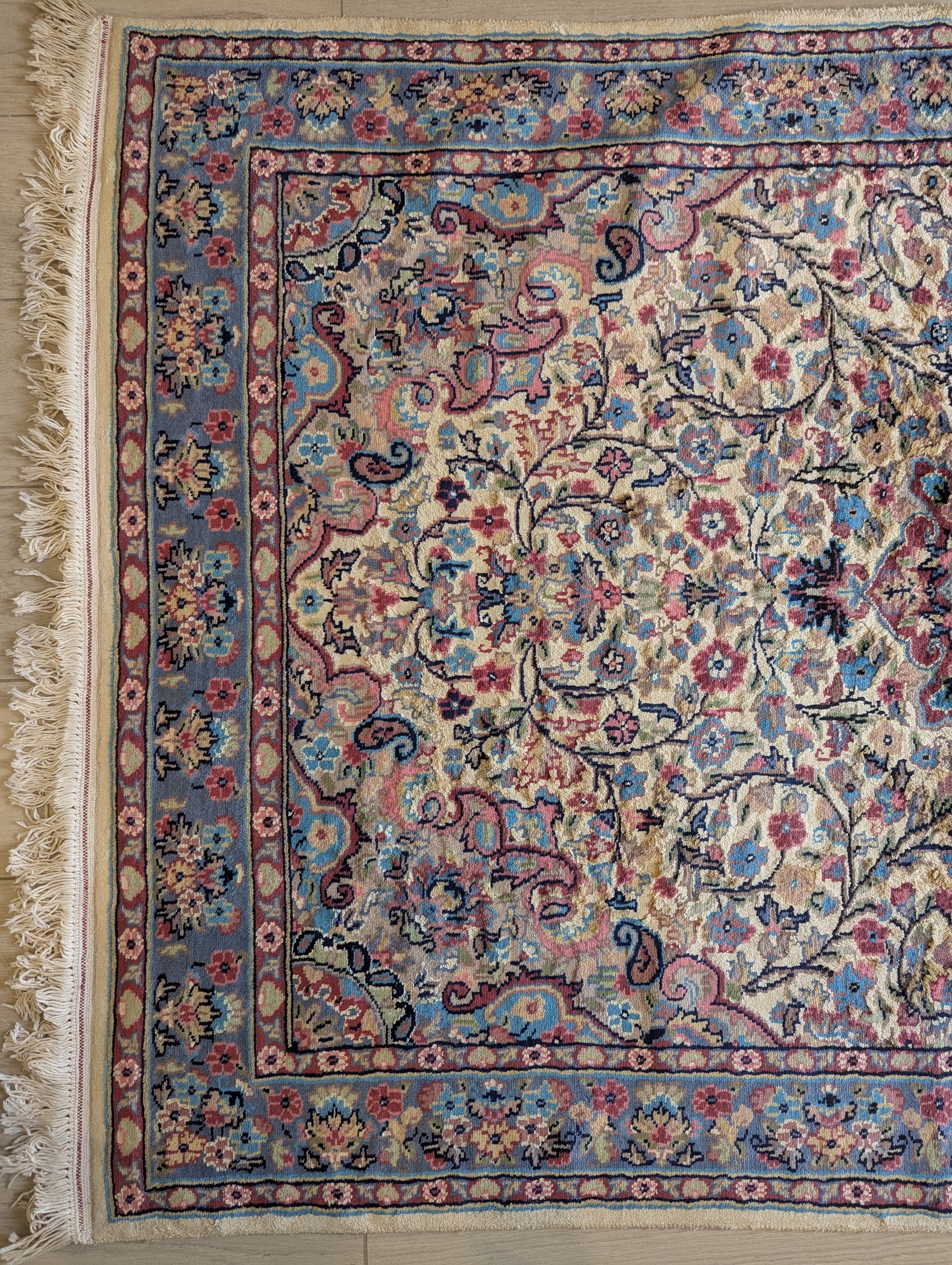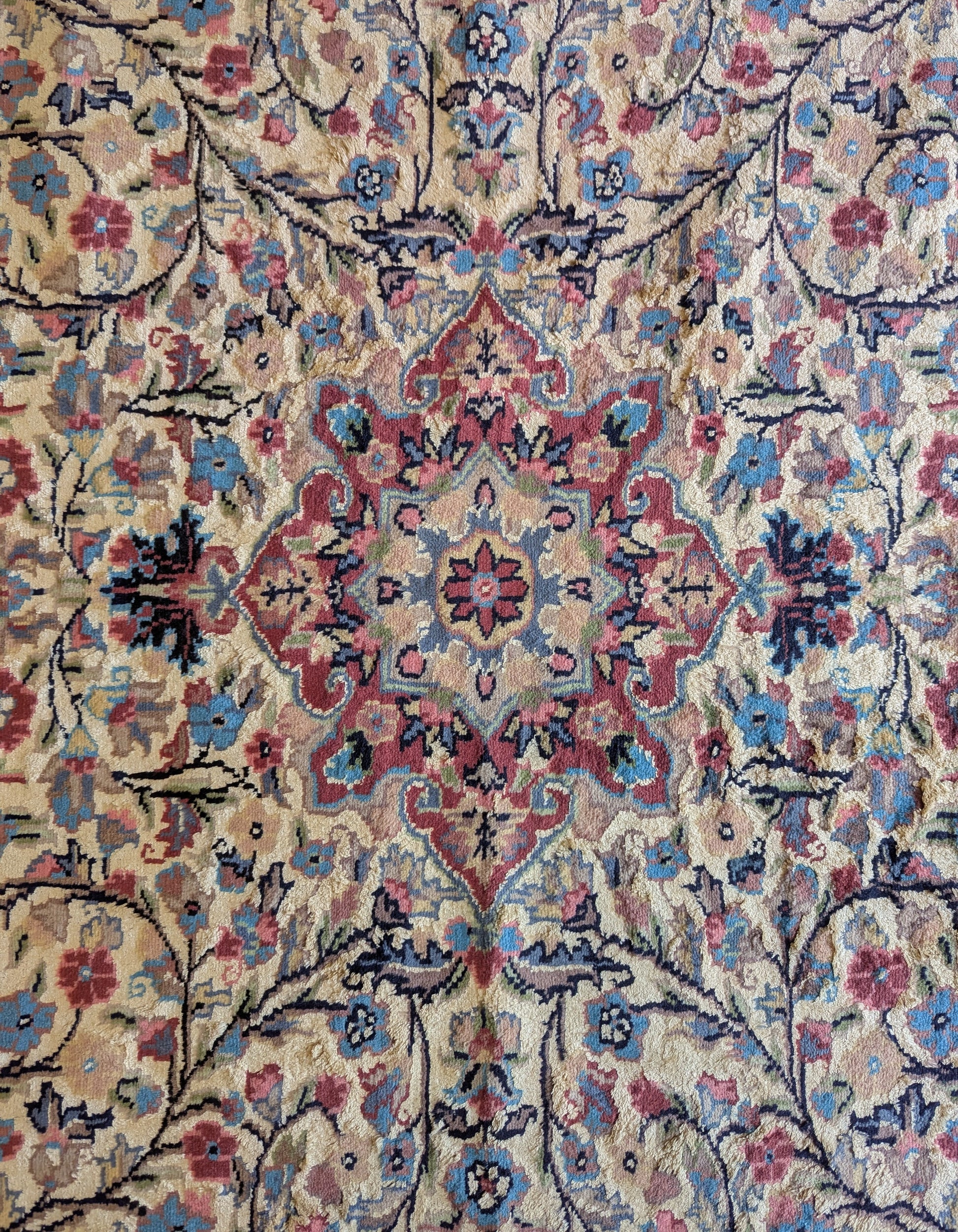 Handmade Vintage Kashan Rug – 4x6 Feet – Cream Base with Floral Medallion(SN:7000)