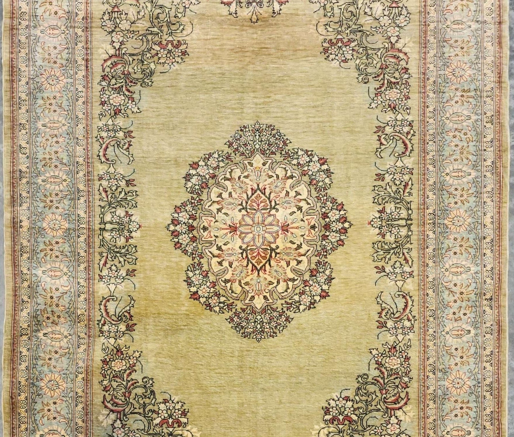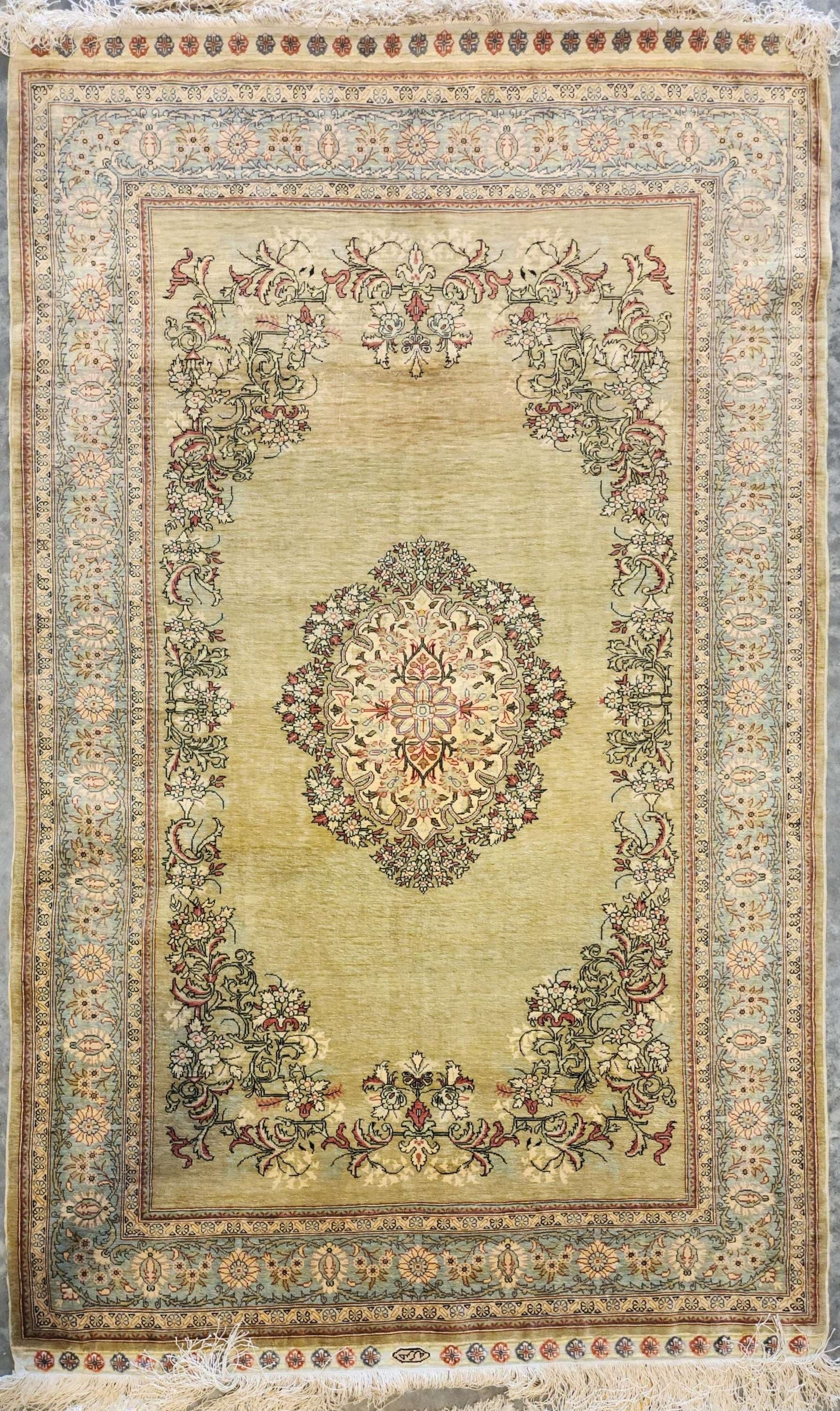 Green Hereke Vintage Rug – 3x5 Feet – Handwoven Turkish Masterpiece (SN:5001)