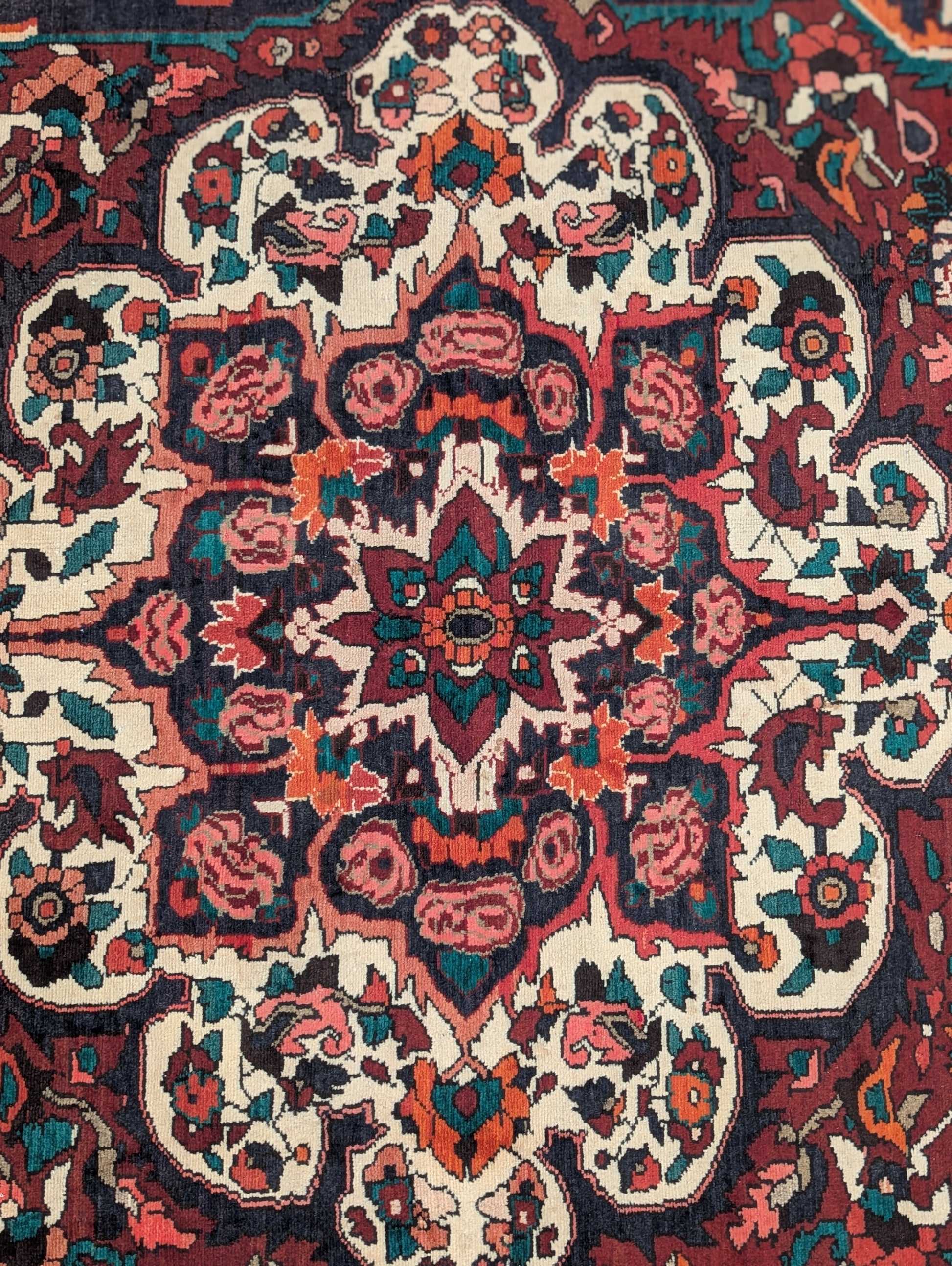 Estimated to be 40–50 years old (1970s–1980s), this rug carries the soft patina and aged beauty of a true collectible. It is an ideal choice for those who appreciate Persian craftsmanship, cultural richness, and heirloom-worthy quality.