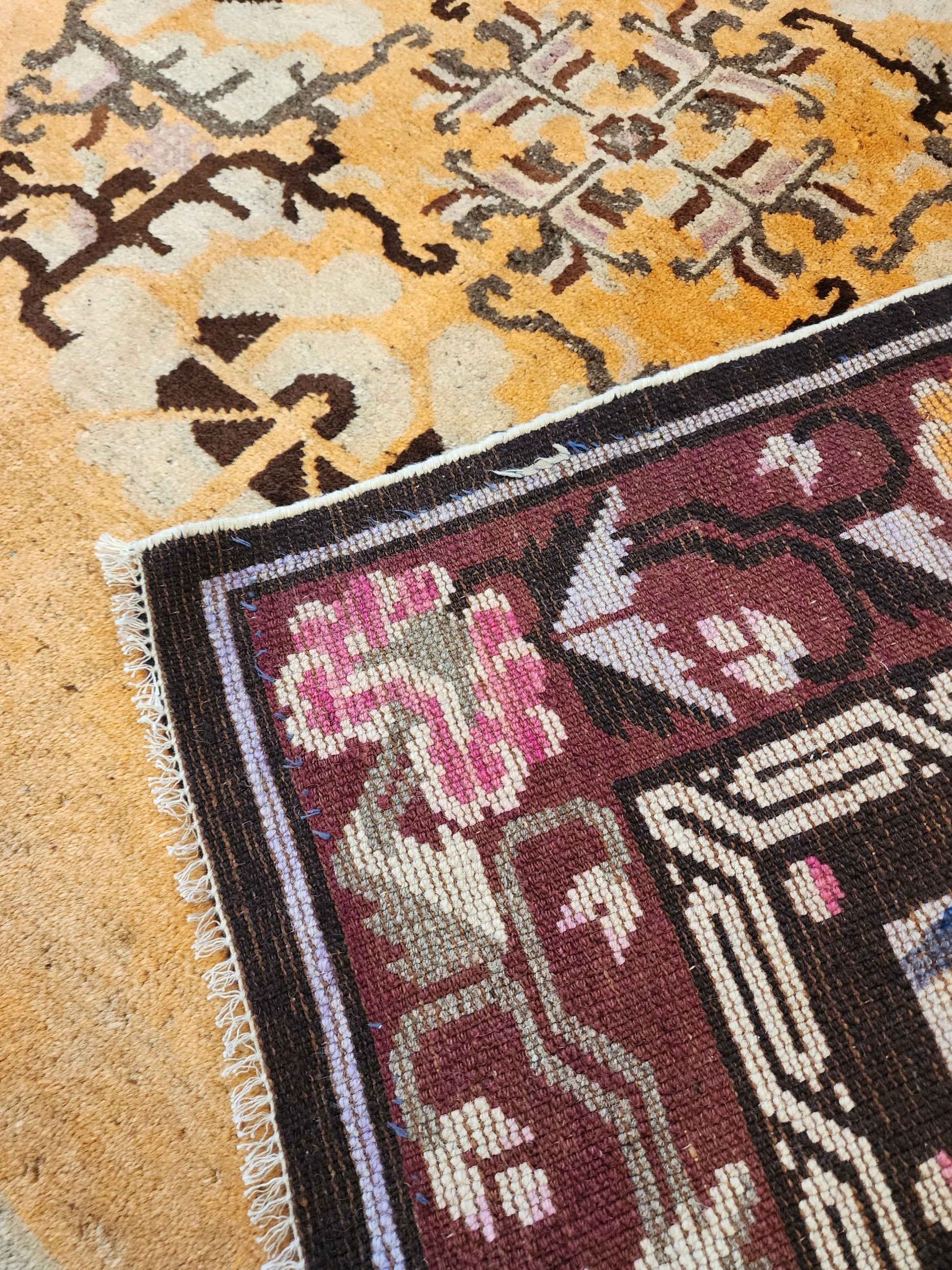 Vintage Beijing Chinese Rug – 5x10 Feet – Golden Yellow & Brown Floral Medallion(SN:MK01)